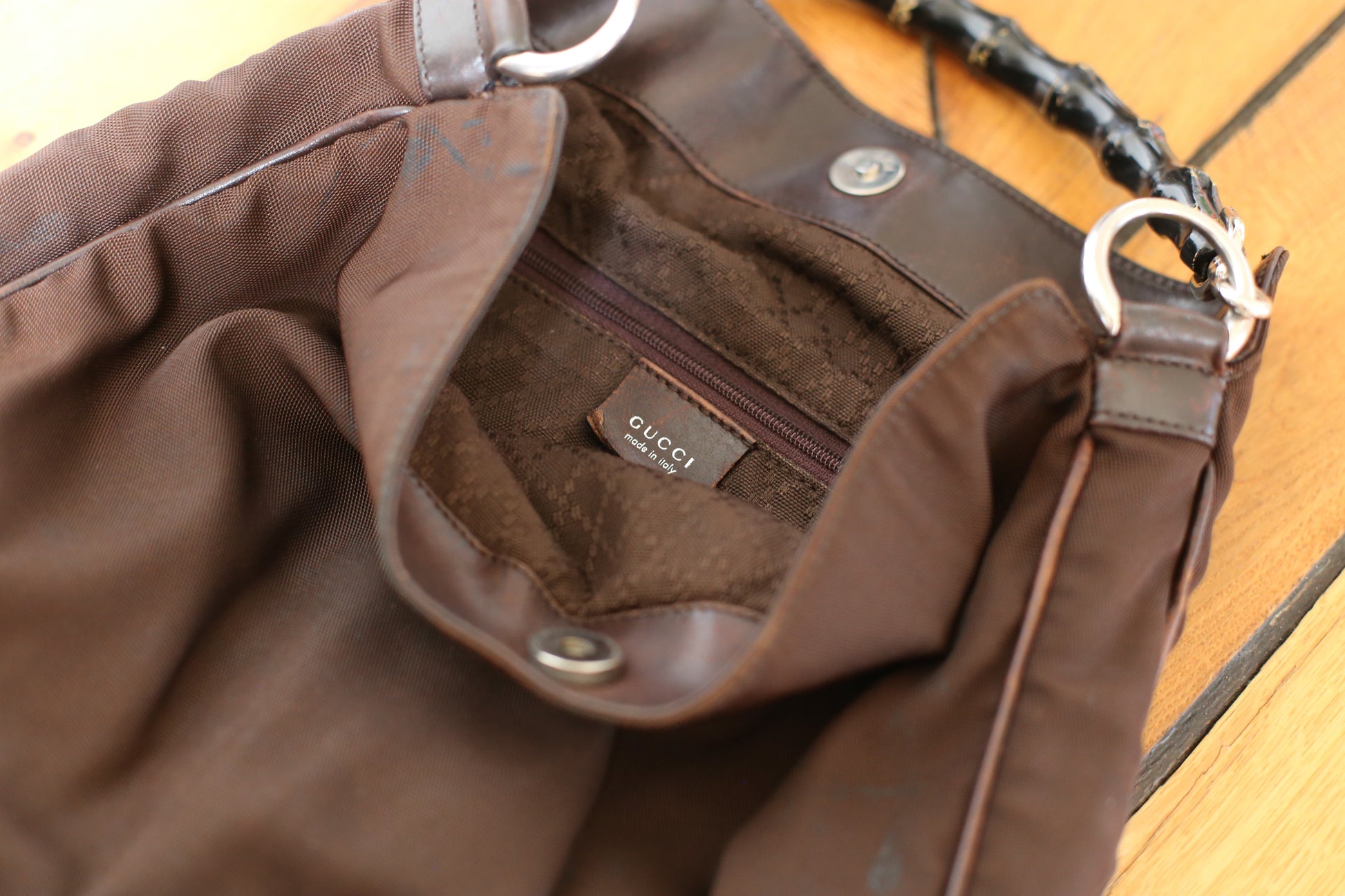 A great classic: the Bamboo handbag from Gucci. The top handle is made of bamboo. Perfect condition inside, the outside is in canvas and leather. Some wear marks (corners) and marks. It can be worn on the shoulder or by hand. It's a perfect timeless choice for all seasons.